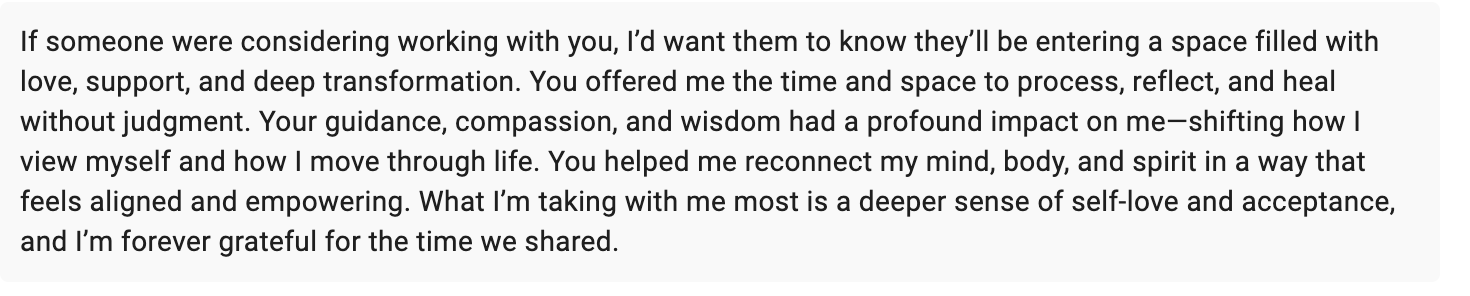 Over the last seven years, I have worked with over 200+ women and men to assist them on their journeys.
